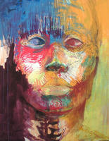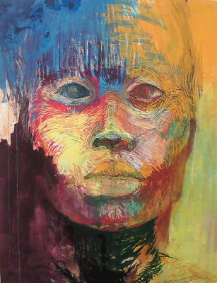 鏡を見ないで自画像を描いてるぞい。